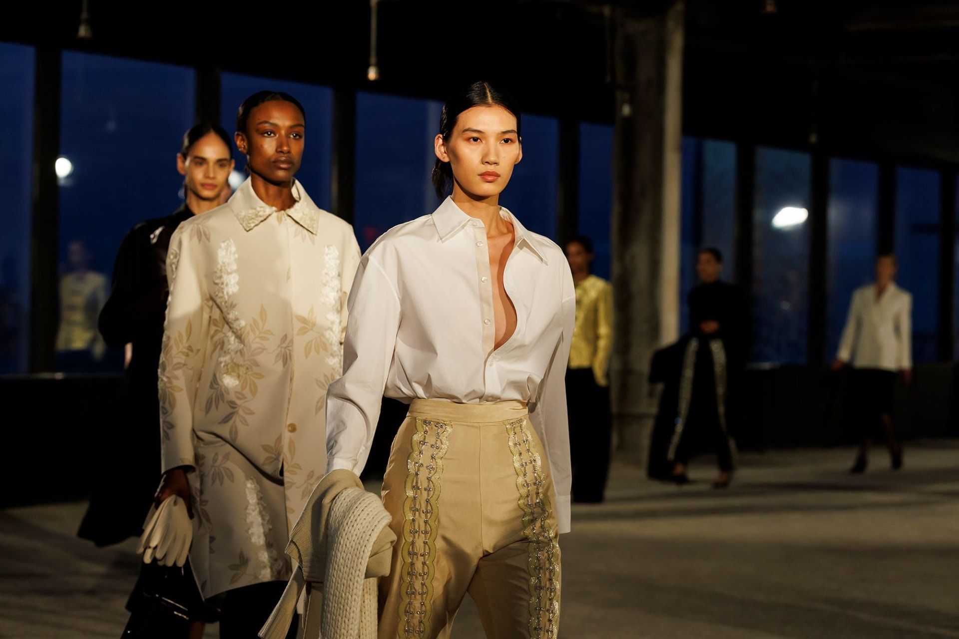 أما دانييلا كالماير، المصمّمة الجنوب أفريقية المقيمة في نيويورك، فقد رفعت هذا الموسم مستوى البدلات الحادة مع قطع متقنة لتتناغم مع اكتشافات قديمة مثل سراويل كوكتيل مرصّعة بالجواهر، وكنزات مستوحاة من الجدات، وسترات مصنوعة من أقمشة إيطالية فاخرة، مؤكدة أنّ الزبونة هي مصدر إلهامها الدائم.