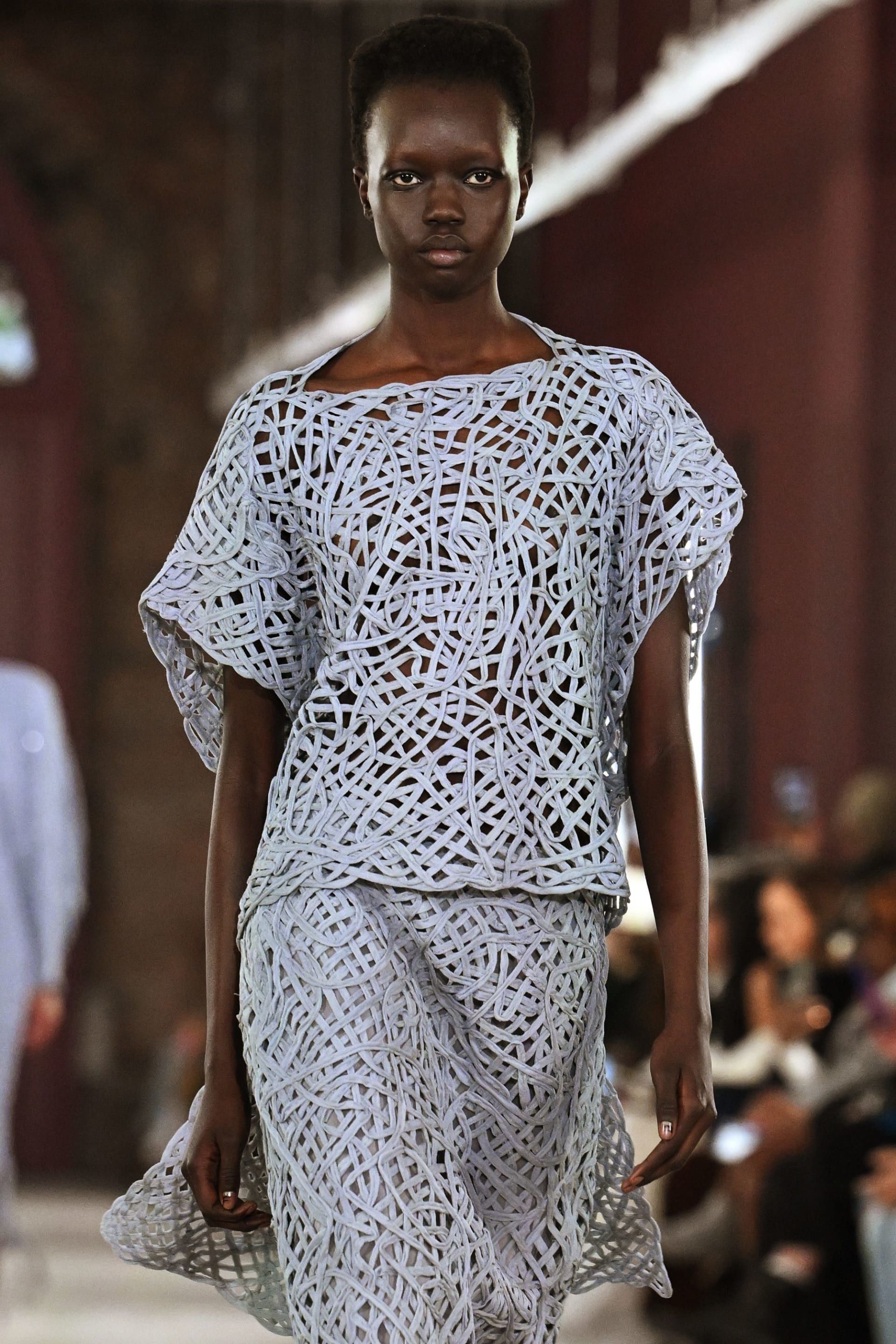 في المقابل، استوحت ريتشل سكوت من أعمال الرسّام الأفرو-كوبي "ويفريدو لام"، مستعرضة تأثيره في استكشاف الغرابة الثقافية للثقافة السوداء والدين. استخدمت لوحة ألوانه الغنية: الأحمر القرمزي العميق، الرمادي المبيّض، والأزرق البودري على تنانير مزخرفة وفساتين مبتكرة ومعاطف تذكارية. ولم تكتف بإعادة إنتاج أعماله، بل دمجت الرموز الروحية والفنية في أقمشتها الخاصة مثل الأورغانزا والكروشيه، جامعًة بين الإثارة والرقي من دون إفراط، لتقدّم بيانًا نادرًا في عالم الموضة المهووس بالقطع الاستهلاكية.