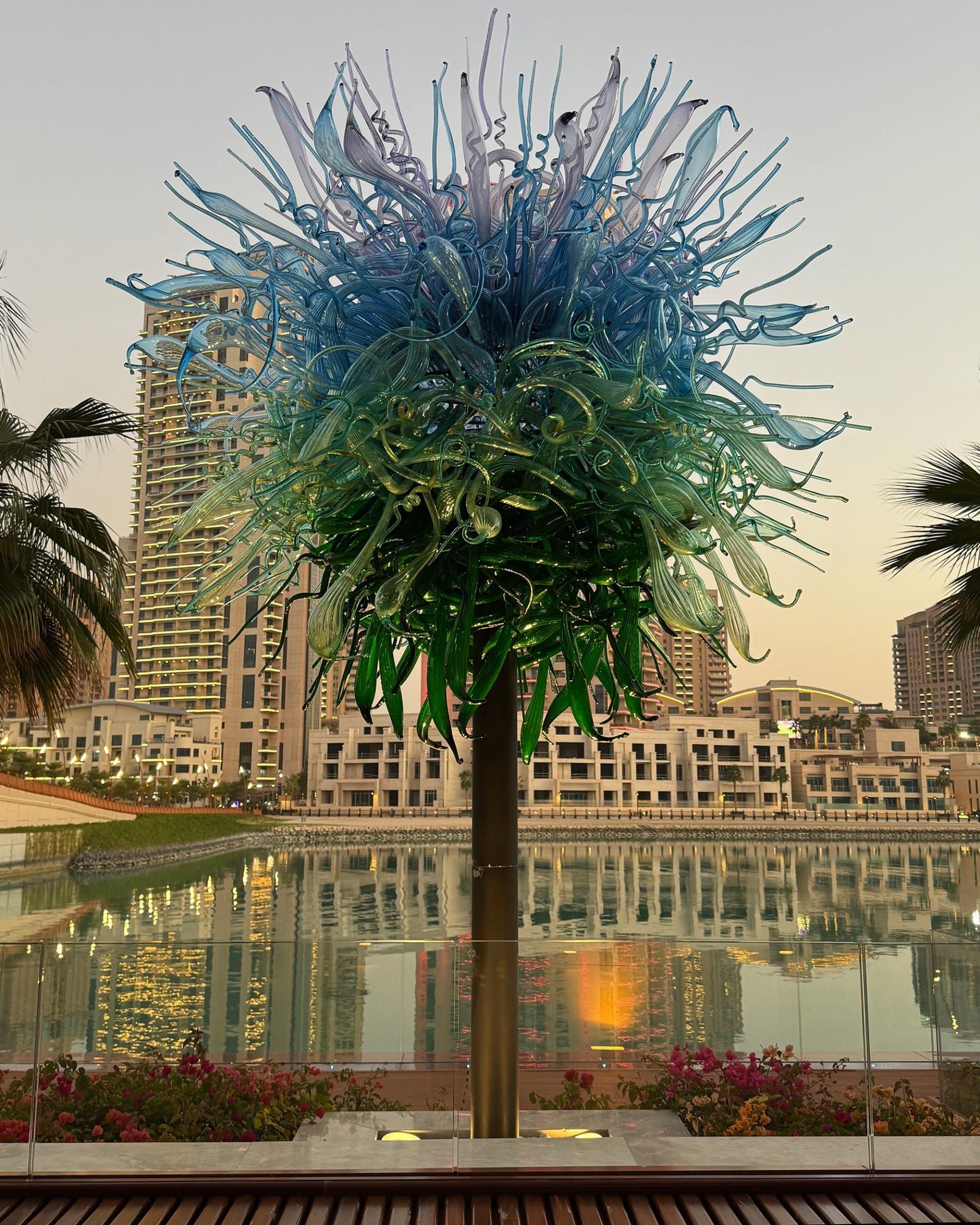ويمتد على طول الساحل المواجه للؤلؤة ممشى تصطف على جانبيه المطاعم، تحيط به أشجار زجاجية مستوحاة من الأشكال المميزة للفنان الأميركي ديل تشيهولي.