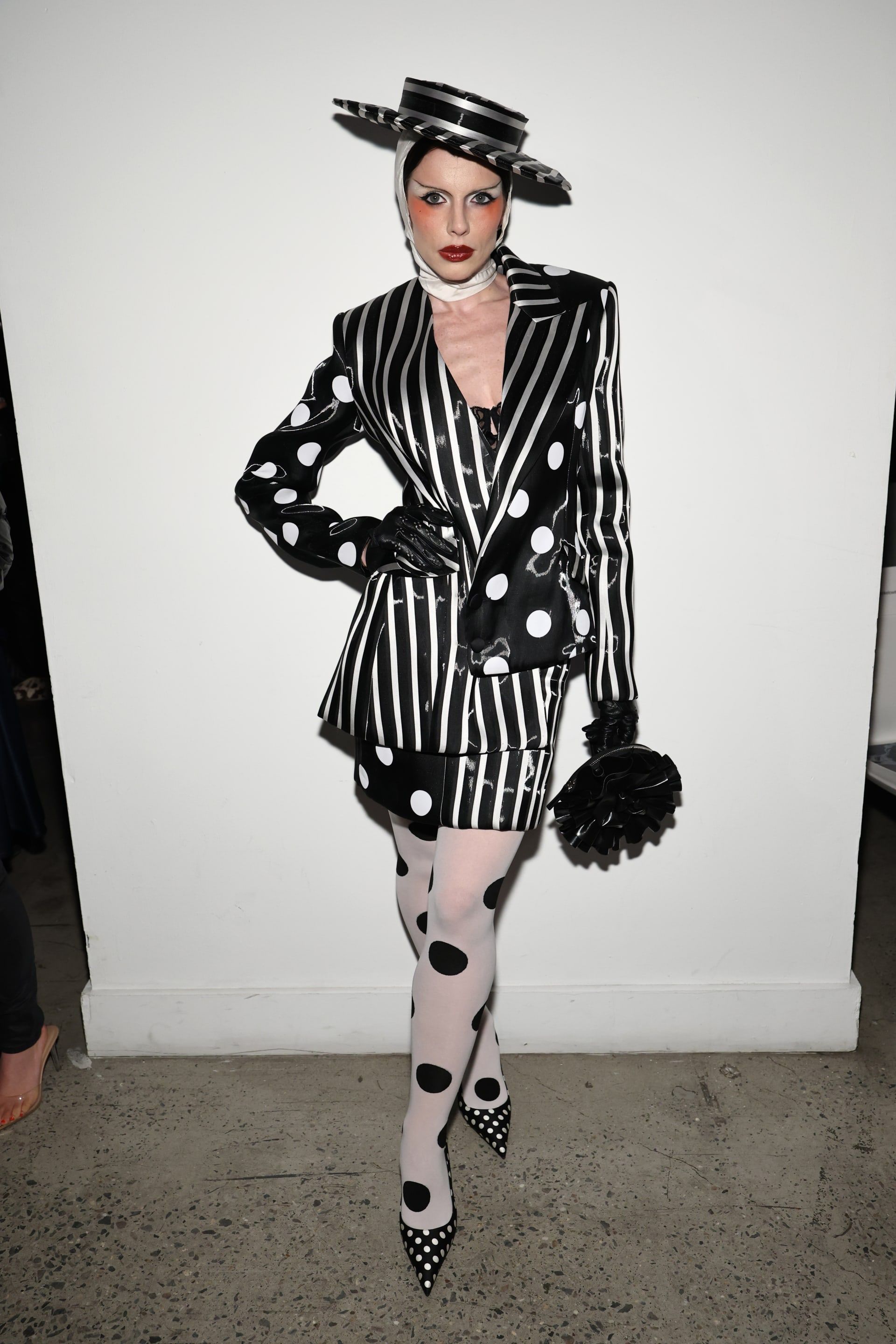 وظهرت الممثلة الإيطالية–الأمريكية جوليا فوكس في عرض كريستيان سيريانو لخريف وشتاء 2026 في مدينة نيويورك الأمريكية، مرتدية بدلة كاملة باللونين الأبيض والأسود، وبنقشتي البولكا دوتز والمخطط، مع جوارب بيضاء وحذاء أسود، لتؤكد قدرة هذه الصيحة على الجمع بين الجرأة والأناقة في آنٍ واحد.