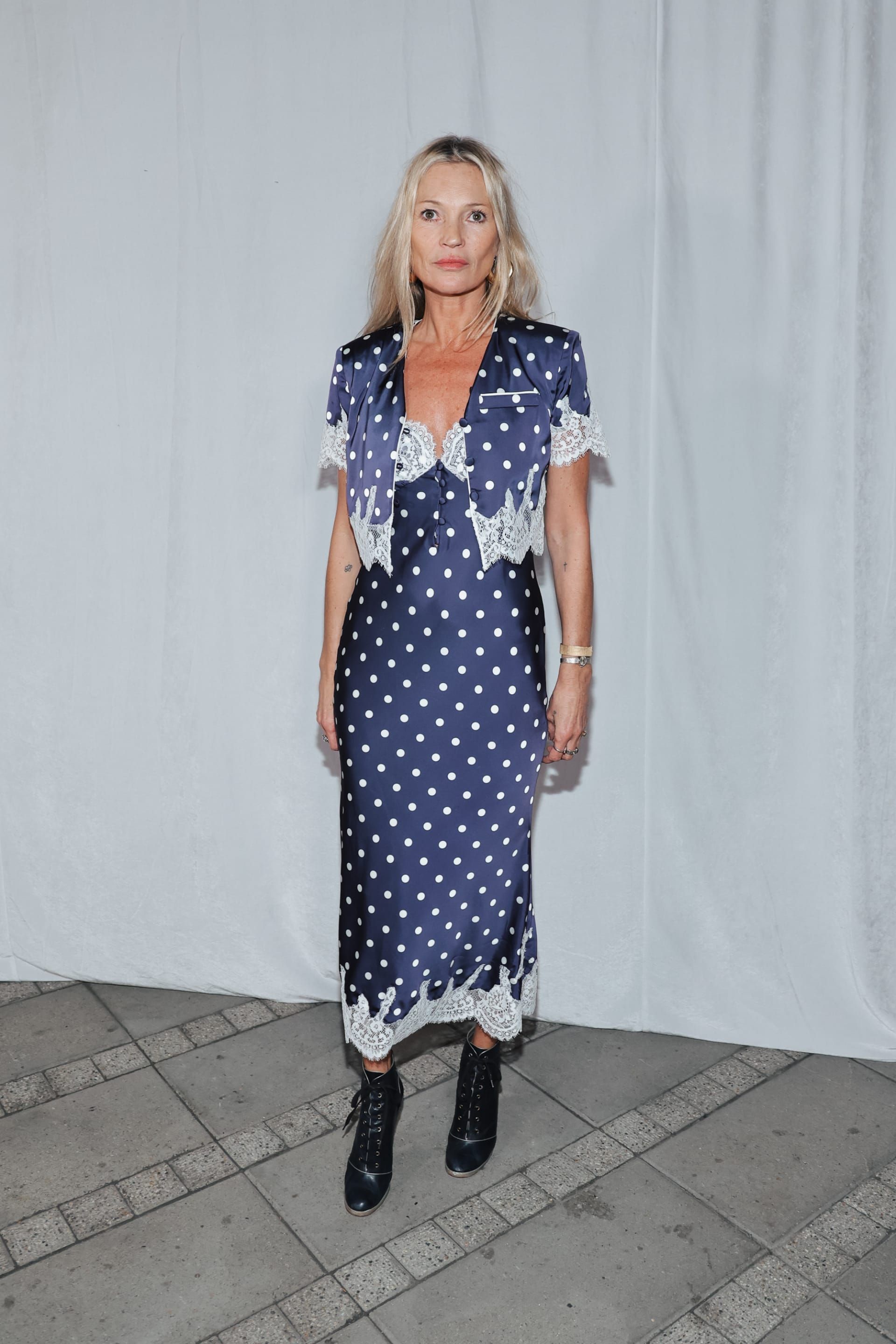 ينطبق االأمر ذاته على كيت ميدلتون، التي اختارت هذه النقشة في مناسبات عدّة، أحدثها فستانًا منقّطًا بالأبيض والأسود خلال حضورها قدّاس الذكرى الـ80 ليوم النصر بأوروبا في كنيسة وستمنستر، لتؤكد استمرار هذه الصيحة كخيار كلاسيكي يتجدّد مع كل موسم.
