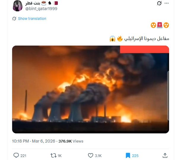 اخبار العرب -كندا 24: الأحد 8 مارس 2026 09:06 صباحاً دبي، الإمارات العربية المتحدة (CNN)-- تداولت حسابات مقطع فيديو في وسائل التواصل الاجتماعي، بزعم أنه يعرض مشاهد لهجوم إيراني على مفاعل ديمونا النووي في إسرائيل.