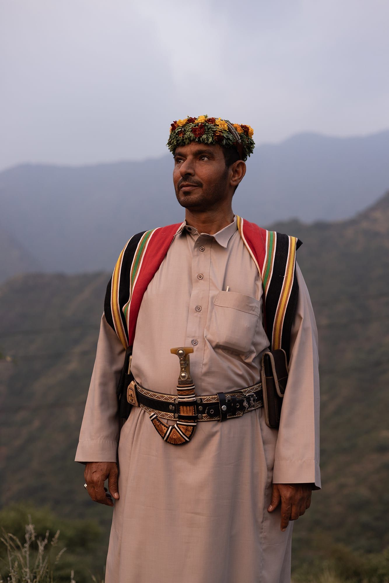 كما لفت انتباهه مشهد الرجال الذين تزينوا بالورود على رؤوسهم، في تقليدٍ يعكس ثقافة فريدة.