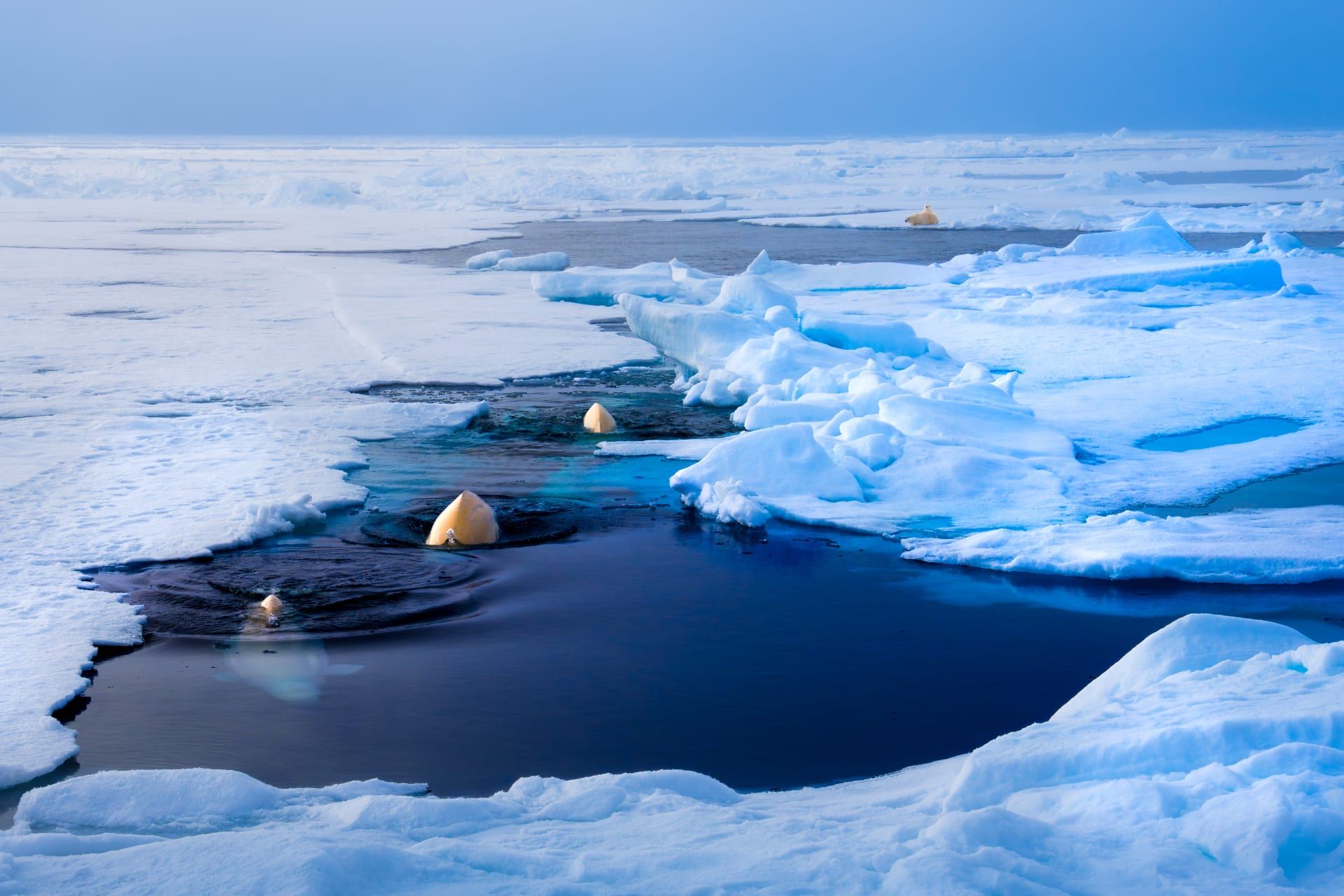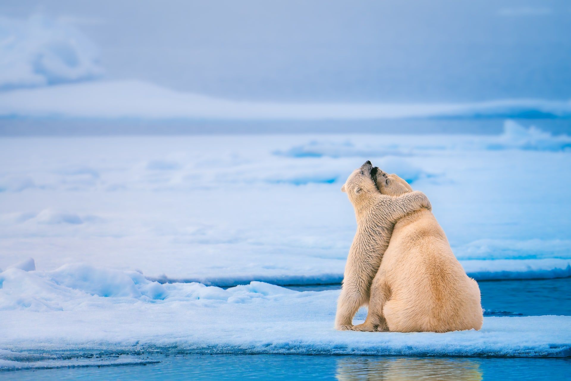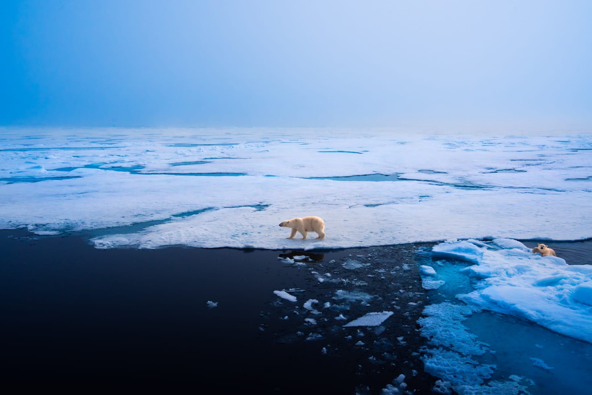 تُظهر الصور التي وثّقها المصور الأسترالي الدبين وهما يقفان فوق الغطاء الجليدي البحري الممتد على مساحات شاسعة.