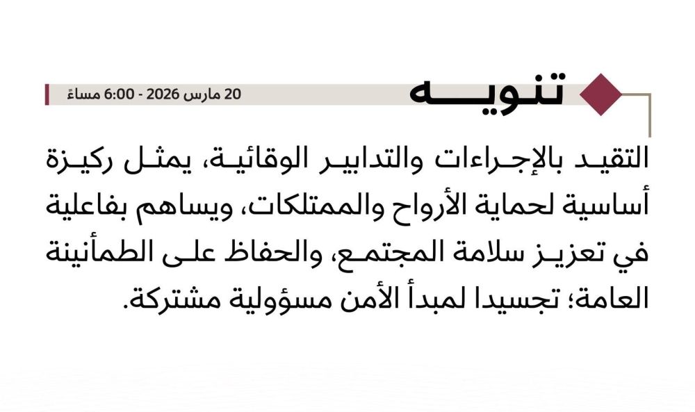 كما أكدت أن التقيد بالإرشادات، بما في ذلك اختيار الأماكن الآمنة، وتجنب المناطق المزدحمة، والإبلاغ عن أي ملاحظات قد تشكل خطرا. وتبذل وزارة الداخلية وكافة الأجهزة الأمنية التابعة لها جهدا كبيرة من أجل توفير الأمن والأمان للمواطنين والمقيمين على أرض دولة قطر في ظل الظروف الراهنة.