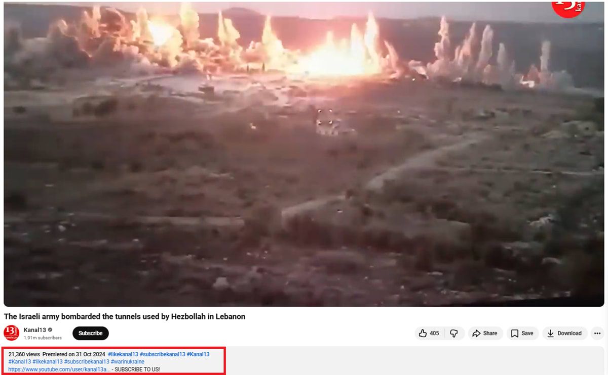 باستخدام البحث العكسي، عثرنا على نسخة من الفيديو تعود إلى 31 أكتوبر/تشرين الأول 2024، قبل نحو شهر من إعلان اتفاق وقف إطلاق النار بين حزب الله وإسرائيل.