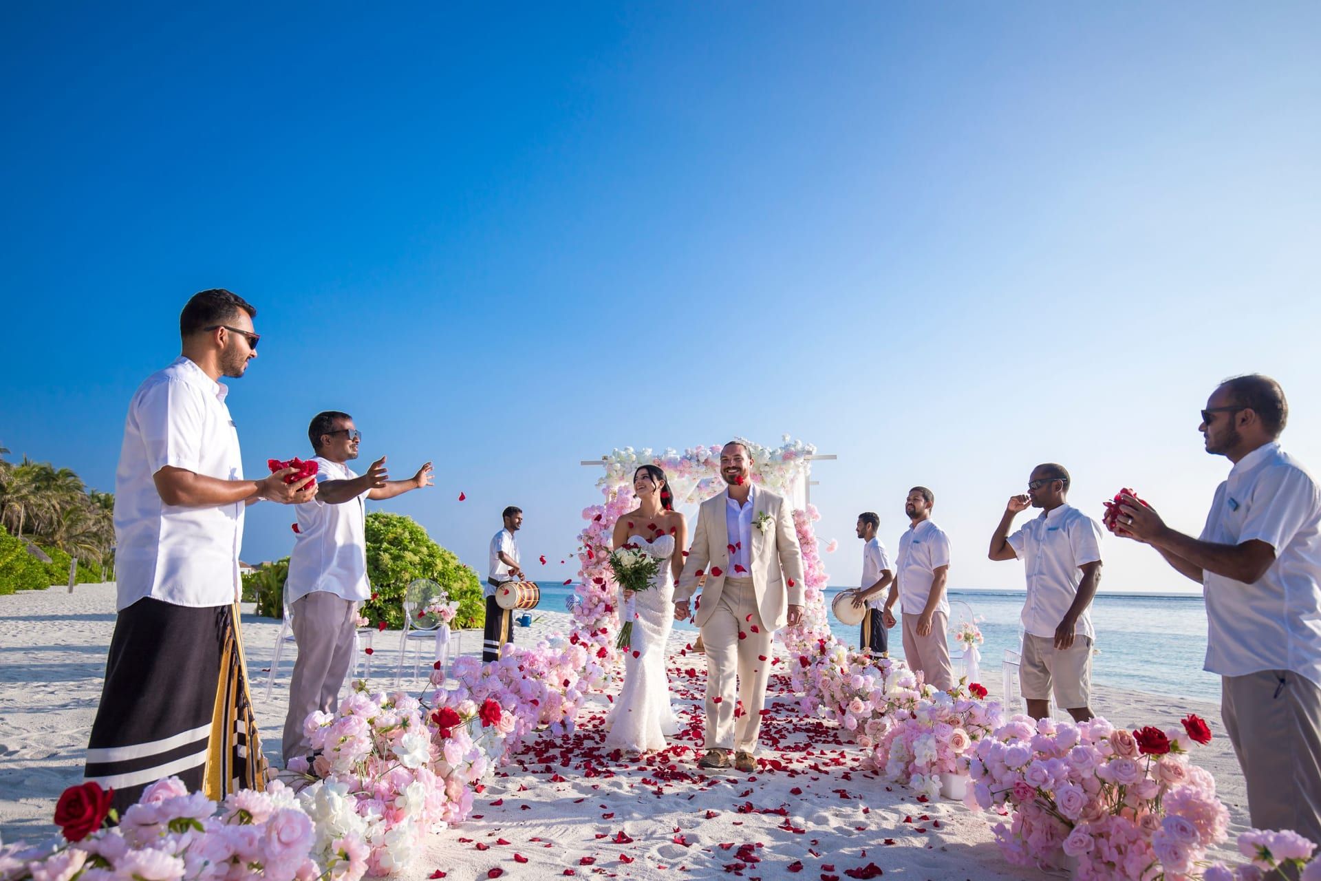 وكان الثنائي يشعران بالصدمة، بعد قضاء أسبوعٍ فاخر في منتجع من فئة خمس نجوم، أُقيم فيه حفل زفافهما على شاطئ خاص برمال بيضاء ناصعة.