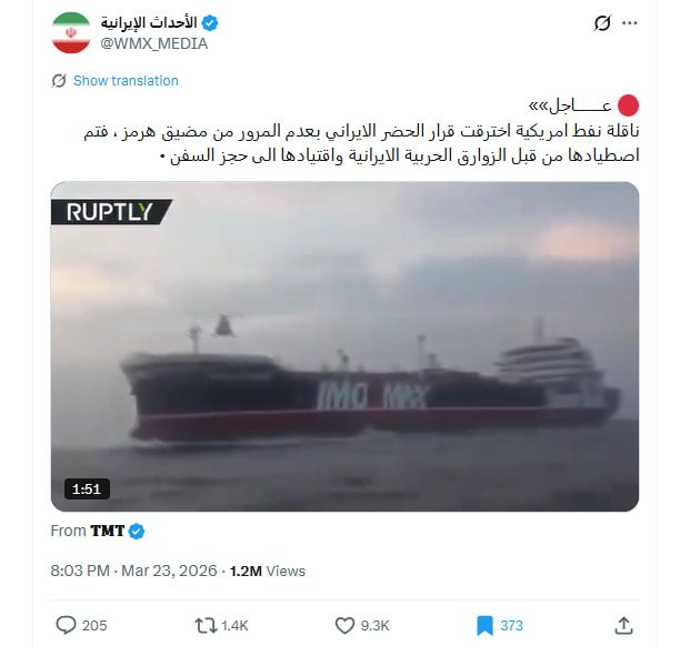 اخبار العرب -كندا 24: الثلاثاء 24 مارس 2026 03:51 مساءً دبي، الإمارات العربية المتحدة (CNN)-- تداولت حسابات مقطع فيديو في وسائل التواصل الاجتماعي بزعم أنه يظهر لحظة احتجاز زوارق إيرانية لناقلة نفط أمريكية، في غضون تفاقم أزمة مضيق هرمز.