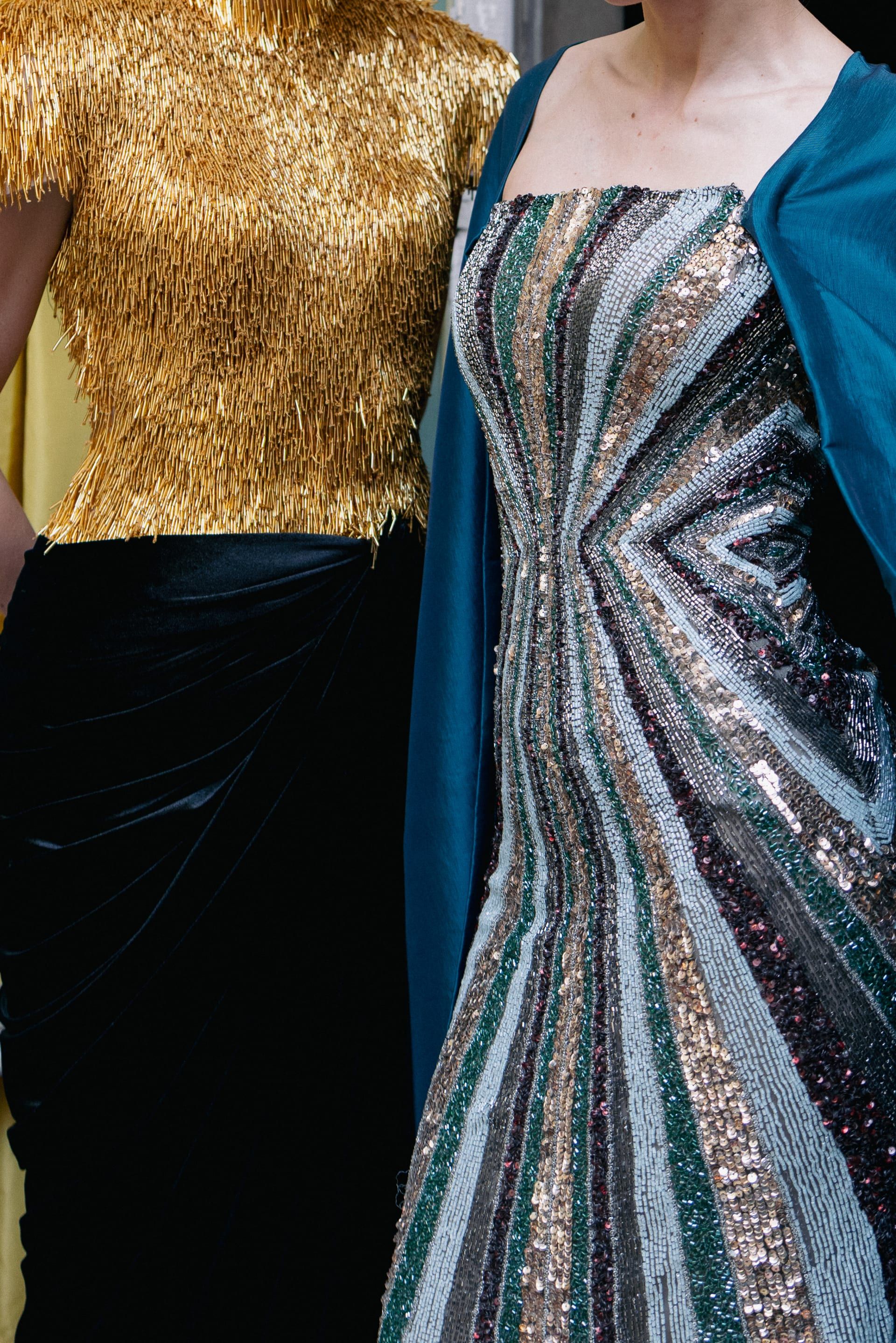 أما عن أسلوبها في المزج بين الحرفية التقليدية واللمسات العصرية، فقد أوضحت أنسي أنها تنظر إلى الحرفية بوصفها لغة قائمة بذاتها، لا مجرد تقنية تنفيذية. وأضافت أن كل غرزة، وكل خامة، وكل تفصيلة تؤدي دورًا أساسيًا في سرد حكاية القطعة، مشددة على أنها لا تتعامل مع الحرفية كعنصر تزييني فحسب، بل كوسيلة تعبير تحمل مضمونًا ورسالة.
