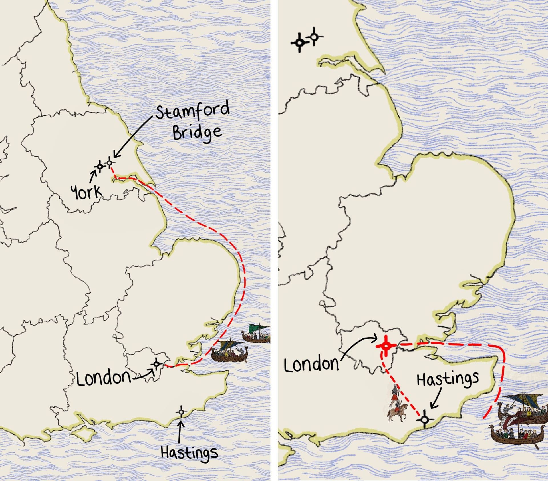 لطالما بدا لفريق ليسنس وسواه من المؤرّخين أنّ رجال هارولد قطعوا نحو 322 كيلومترًا خلال 10 أيام بعد معركة شاقة في ستامفورد بريدج قرب يورك ضد زعيم الفايكنغ هارالد هاردرادا، المنافس الآخر على العرش، فكرة غير محتملة انطلاقًا من المسافات الشاسعة.