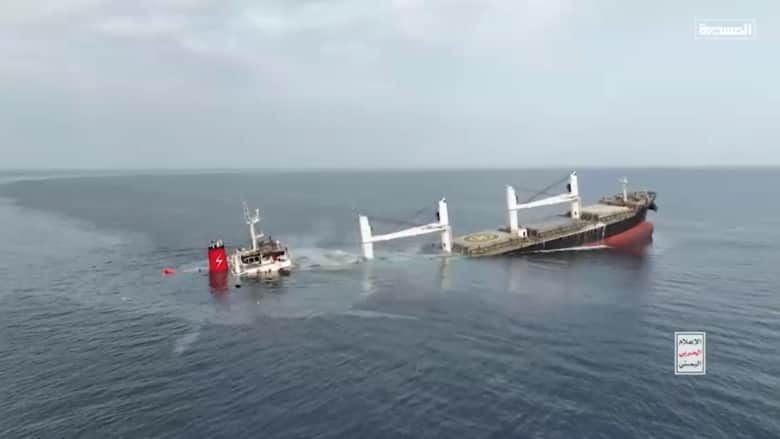 الثانية خلال أسبوع.. شاهد كيف أغرق الحوثيون سفينة شحن في البحر الأحمر