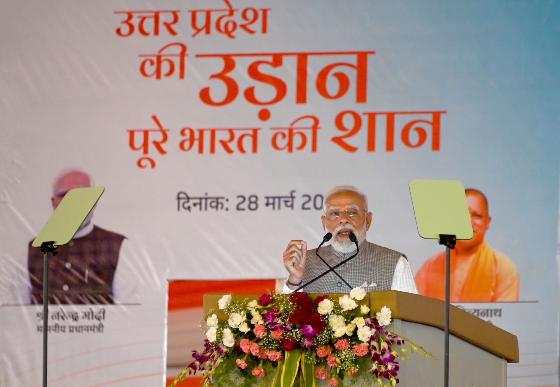 قال مودي: "ستنطلق الطائرات من هنا إلى العالم، وسيصبح هذا المطار أيضًا رمزًا لولاية أوتار براديش المتقدمة التي تحلّق نحو المستقبل. اليوم، تستعد نويدا لاستقبال العالم بأسره. هذه المنطقة بأكملها تعزز رؤية الهند المعتمدة على ذاتها".