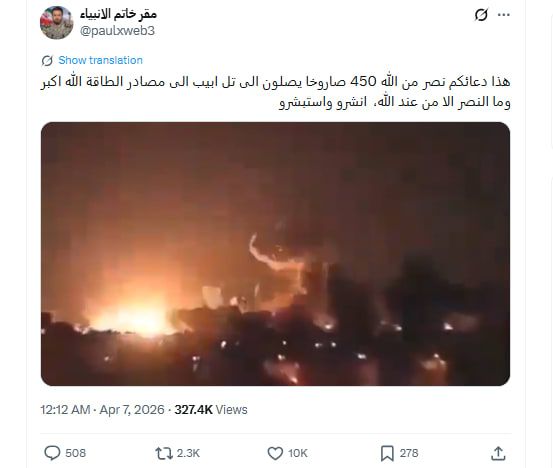 شُوهد المقطع مئات الآلاف من المرات في منصة إكس وحدها، مصحوبًا بوصف مُضلل يقول: "عاجل.. لحظة الاستهداف المباشر على تل أبيب بعشرات الصواريخ الانشطارية"، و"هذا دعاءكم نصر من الله 450 صاروخًا يصلون إلى تل أبيب إلى مصادر الطاقة الله أكبر وما النصر إلا من عند الله، انشروا واستبشروا".