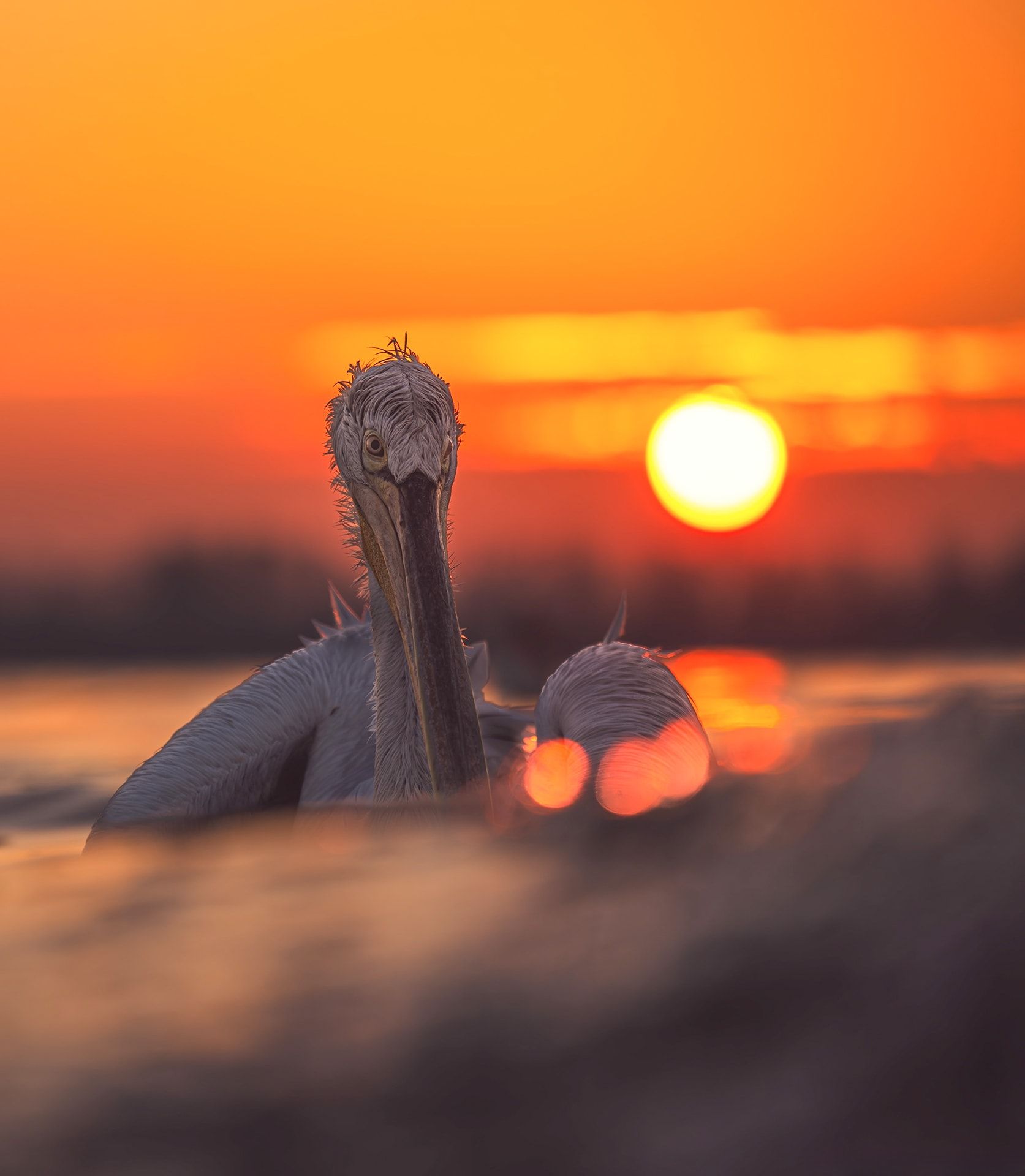يتجلّى ذلك في صورةٍ طريفة التقطها فجرًا لأحد طيور البجع الذي اقترب منه كثيرًا، وفتح منقاره على اتساعه أمام عدسته.