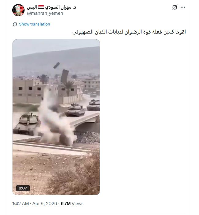 اخبار العرب -كندا 24: الجمعة 10 أبريل 2026 07:27 صباحاً دبي، الإمارات العربية المتحدة (CNN)-- انتشر مقطع فيديو في وسائل التواصل الاجتماعي بزعم أنه يعرض مشاهد لكمين نصبه حزب الله لرتل من الدبابات الإسرائيلية.