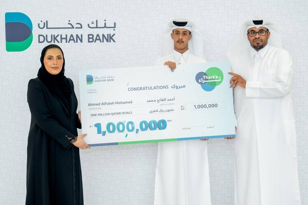 الاثنين 13 أبريل 2026 06:40 مساءً أعلن بنك دخان فوز السيد أحمد الفاتح محمد بأولى الجوائز الكبرى لهذا العام من حساب التوفير «ثراء» والتي تبلغ قيمتها 1,000,000 ريال قطري، وذلك بعد إجراء السحب الإلكتروني بالمقر الرئيسي للبنك، تحت إشراف وحضور ممثل عن إدارة التراخيص النوعية ومراقبة الأسواق في وزارة التجارة والصناعة.
