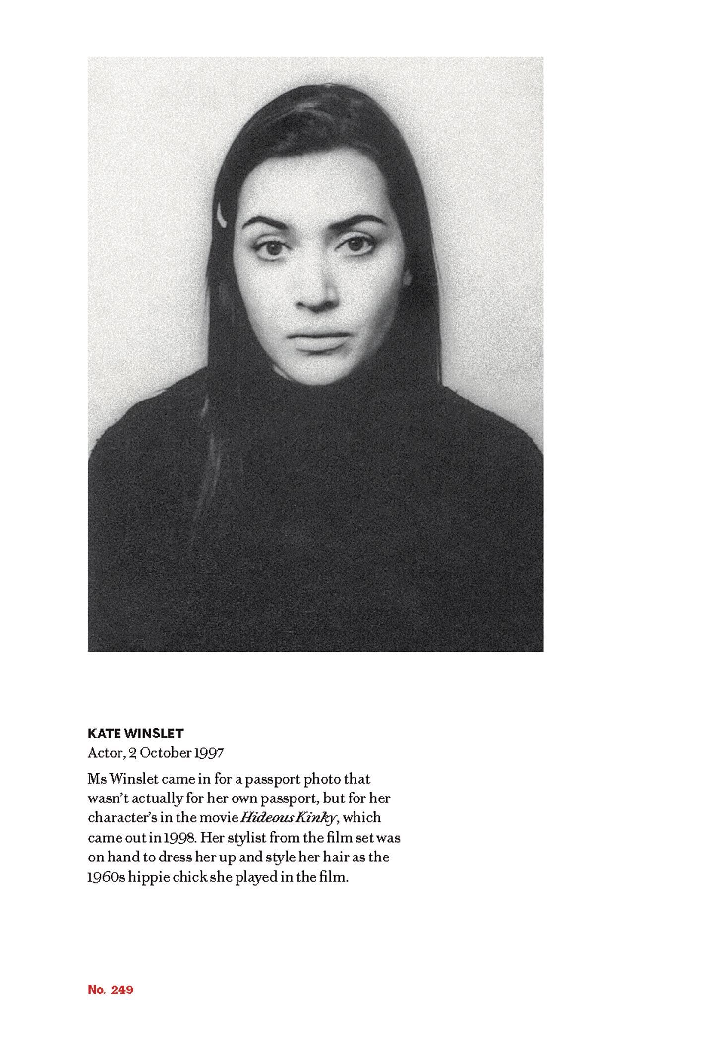 ومن الاستثناءات الممثلة كيت وينسلت، التي حضرت في أواخر التسعينيات مع فريق تصوير أثناء عملها على فيلم "Hideous Kinky"، حيث احتاجت شخصيتها لإظهار جواز سفرها. وقد التُقطت الصورة قبل أشهر قليلة من صدور فيلم "تيتانيك" الذي غيّر مسار حياتها.