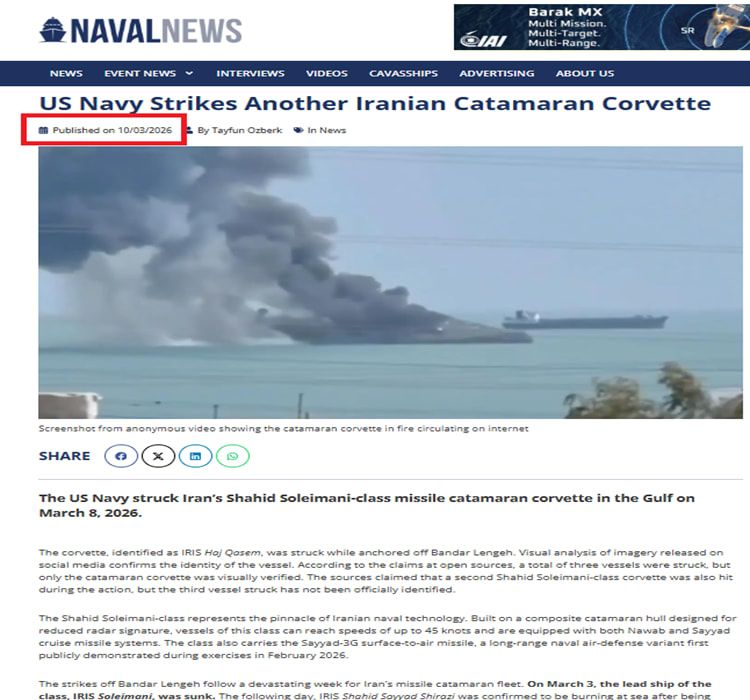 كان موقع "Naval News" أشار إلى أن الهجوم وقع في 8 مارس الماضي، وأفاد أن تحليلا بصريًا أوضح هوية الفرقاطة، التي تحمل اسم "آيريس حاج قاسم"، أثناء رسوها قبالة مدينة بندر لنجه على ساحل الخليج.