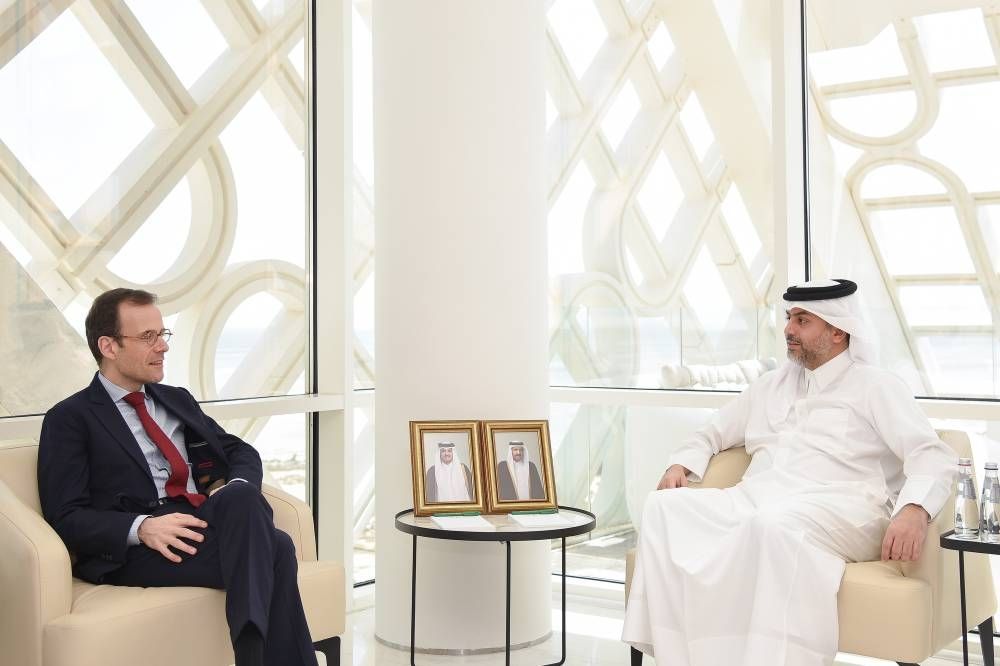 الاثنين 20 أبريل 2026 10:52 صباحاً الدوحة في 20 أبريل /قنا/ اجتمع سعادة الشيخ محمد بن حمد بن فيصل آل ثاني الرئيس التنفيذي لهيئة المناطق الحرة - قطر، مع سعادة السيد أرنو بيشو سفير الجمهورية الفرنسية لدى الدولة.