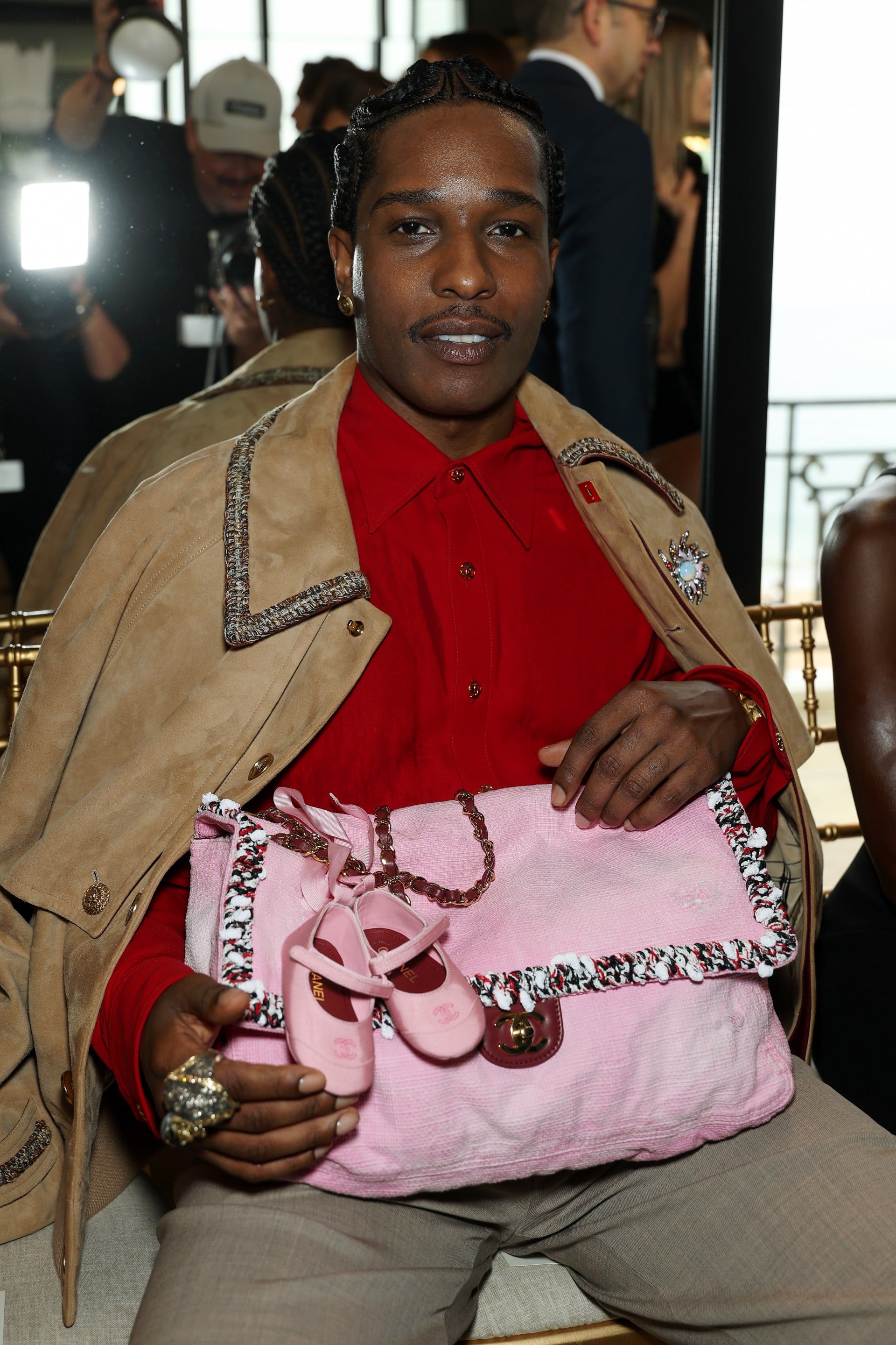 حضر روكي، الذي يُعد من أبرز الوجوه الحاضرة في عروض شانيل خلال الفترة الأخيرة، مرتديًا قميصًا أحمر، مع جاكيت وسروال باللون البيج بتدرّجين مختلفين، لكن حقيبته النسائية من دار "شانيل" شكّلت العنصر الأبرز في إطلالته، والتي استعرضها بوضوح في مختلف لقطاته التصويرية.